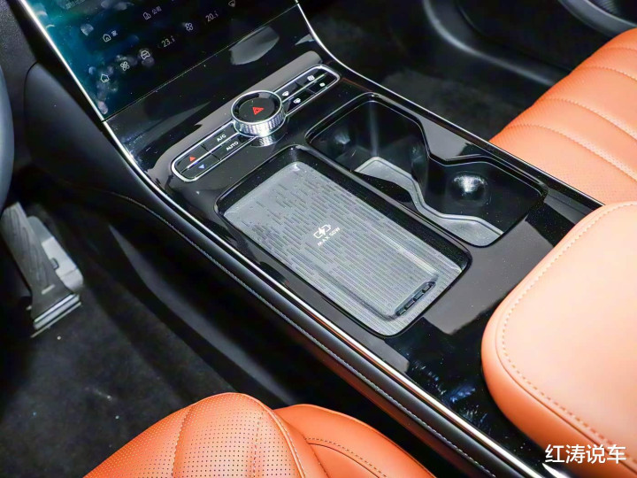 全新瑞虎8的副仪表台是上下双层设计,下面一层为储物空间,带有USB接口等,而上面一层虎款和豹款的设计有所不同,虎款副仪表台的前端设计有双手机放置平台和单无线充电板,而豹款的副仪表台前端是实体旋钮和按键,后面是单手机无线充电板。