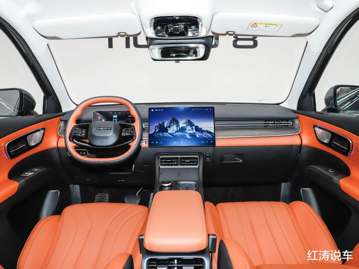 全新瑞虎8的虎款和豹款中控台布局是一样的,中间应用带有纹理的饰板,车内为双拼配色,采用电子怀挡机构和双辐式多功能方向盘,而虎款配备悬浮式中控大屏,豹款则是竖向中控大屏。